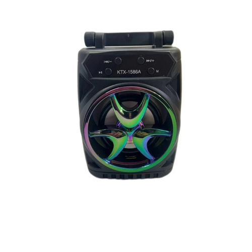 اسپیکر 3 اینچ قابل حمل kTX-1586A علاوه بر قابلیت اتصال بلوتوث به انواع گوشی و کامپیوتر، از طریق درگاه USB و درگاه کارت حافظه قابلیت پخش موسیقی با بالاترین کیفیت را دارد. برد مفید بلوتوث این دستگاه 10 متر و توان خروجی صدای آن 5w ,سیگنال صدا بیش از 80db, وفرکانس صدا از 100 هرتز تا 20k هرتز است.باتری دستگاه 500mah بوده که با کلگی شارژر 5v و 1amp شارژ میشود. از فلش مموری و کارت حافظه تا ظرفیت 32 GB و فرمتfat32 پشتیبانی میکند.زمان شارژ کامل بین 1 تا 2 ساعت، و نگهداری شارژ با ولوم 75%بیش از 1 ساعت و با ولوم 50% بیش از 2 ساعت میباشد.رقص نور دارد و کیفیت صدای hd را ارائه میدهد