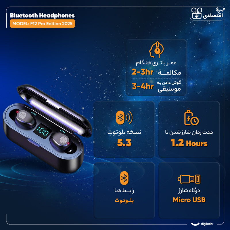 هدفون بی سیم مدل F12PRO Edition2025 با ظاهر زیبا و ظریف محصولی مناسب و یک هدیه عالی برای نزدیکانتان خواهد بود. هدفون های True Wireless Stereo که F12PRO Edition2025 نیز یکی از آنها می باشد، می توانند کیفیت صدای فوق العادهای را با باس عمیق و تریبل شفاف تولید کنند. صدای استریو Hi-Fi و تماس های واضح، گوشی های بلوتوثی بی سیم و بلندگوهای 6 میلی متری بزرگ، همچنین با بیس قوی، شفاف، متعادل و عملکرد سه برابر برای بازتولید زنده صدای دریافتی و ارسالی شماست. هدفون بی سیم مدل F12PRO Edition2025 دارای فناوری حذف نویز CVC8.0 می باشد که موسیقی آرام و تماس های واضح حتی در محیط های پر سر و صدا را برای دو طرف مکالمه فراهم می کند. محفظه شارژ این هندزفری دارای یک باتری بزرگ و قوی 2000 میلی آمپر ساعتی و ظرفیت باتری گوشی 50 میلی آمپر ساعتی می باشد که تا 800 ساعت زمان آماده به کار(استندبای) خواهد داشت و زمان مکالمه و پخش موسیقی آن نزدیک به 4 ساعت با هر بار شارژ خواهد بود. خروجی صدای گوشی ها نیز بسیار واضح، شفاف، متعادل و دارای بالانس بسیار مناسب و استاندارد است. و در نهایت طراحی انحنادار کویل و ساختار با کیفیت اجزای آکوستیک این هندزفری باعث می شود تا صدایی غنی و خالص را تجربه کنید.