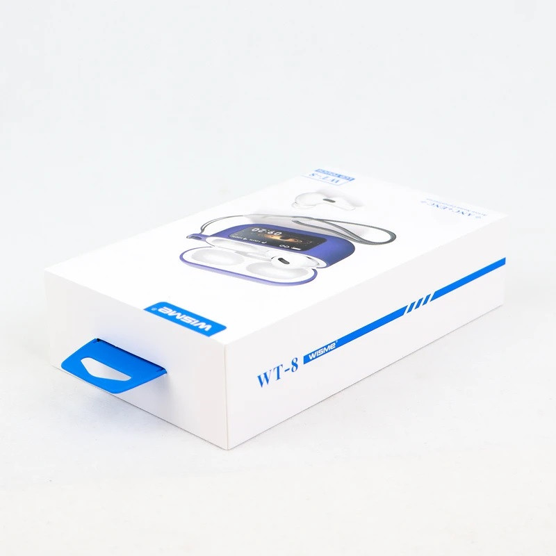 ایرپاد ویزمی مدل WT-8 پرو 2 Wisme WT8 Wireless Headphone این ایرپاد دارای نمایشگر لمسی روی کیس با کیفیت صدای عالی با بیس قوی – مناسب برای موزیک و مکالمه می باشد. که با بهره گیری از بلوتوث نسخه 5.3 اتصال سریع، پایدار و بدون تأخیر را ارائه میدهد. این ایرپاد باتری بادوام با شارژ Type-C که امکان استفاده طولانی و شارژ سریع را میدهد. این ابزار با طراحی ارگونومیک و ضدتعریق مناسب برای استفاده روزمره و ورزش می باشد.