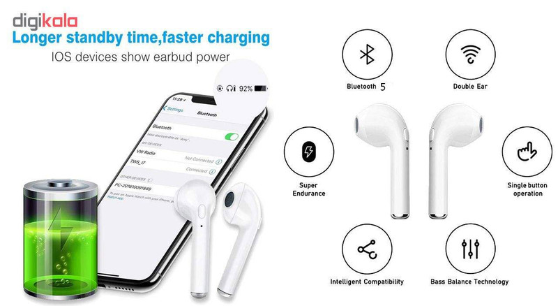 پشتیبانی از سیری، دارای محافظ باتری گوشی آخرین نسخه بلوتوث 5.0، فاصله کار طولانی تر، مصرف برق پایین تر صدای HIFI، به طور خودکار روشن و خاموش، جفت شدن خودکار زمان موزیک: 4 ساعت ظرفیت باتری گوشی با ظرفیت 45 میلی آمپر، باطری شارژ 400 میلی آمپر