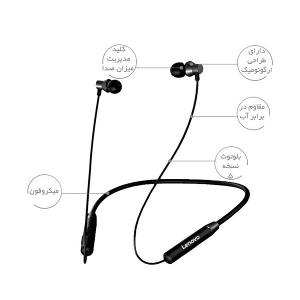 کمپانیی Lenovo یکی از معتبر ترین و خوش نام ترین کمپانی های فعال در زمینه لوازم برقی و تکنولوژی می باشد که بسیاری از محصولات آن در کشور ما به فروش می رسد. هندزفری بلوتوث HE05x محصولی از این کمپانی بوده و به صورت دور گردنی و ورزشی طراحی شده است. دو سری این محصول به وسیله یک تل سیلیکونی به هم متصل شده اند و این امر باعث شده تا به راحتی بر روی گردن شما بماند. تل این محصول به گونه ای طراحی شده که به کاربر این امکان را می دهد تا بتواند به راحتی آن را به هر حالتی که می خواهد در بیاورد. سری های هندزفری Lenovo HE05x به صورت تو گوشی طراحی شده اند و زاویه ای 45 درجه دارند و دارای سری های سیلیکونی می باشند تا به راحتی داخل گوش قرار بگیرد و دقیقاً بر اساس ارگونومی گوش طراحی شده تا کاربر در راحت ترین حالت ممکن به گوش دادن موسیقی بپردازد. همان طور که اشاره شد، سری های این محصول دارای زاویه ای 45 درجه بوده که باعث شده تا هندزفری بدون هیچگونه مزاحمتی داخل گوش کاربر قرار گیرد و هرگز از گوش آن جدا نشود. بر روی بدنه هندزفری HE05x یک قسمت کنترل قرار دارد که شامل 3 کلید فیزیکی بوده و وظیفه آن ها تغییرات موسیقی و ولوم، مدیریت تماس ها و پخش و قطع آهنگ می باشد و این امر بدون نیاز به منبع پخش (برای مثال: خود گوشی) انجام می پذیرد. یکی از نقاطی که می توان دقت کمپانی لنوو را در آن مشاهده کرد دو سری تل این محصول می باشد ، زیرا بر روی هر دو سر یک قسمت ضخیم تر قرار داده تا تعادل این محصول حفظ شود و فرم قرینه هندزفری کمک می کند تا بتوانید بدون جابجا شدن و متمایل شدن هندزفری به یک سو، از آن استفاده نمایید. یکی از دغدغه های امروز دزدیده شدن گوشی همراه به هنگام مکالمه است که با استفاده از این محصول می توانید با خیال راحت مکالمه ای لذت بخش داشته باشید، در حالی که گوشی درون جیب شما است. در طراحی این هندزفری از یک میکروفون HD استفاده شده که باعث شده کاربر تجربه یک مکالمه شفاف و بدون نویز را تجربه کند. هندزفری بلوتوث Lenovo HE05x Hanging دارای یک باتری داخلی بوده که در مدت زمان 2 ساعت به شارژ کامل خود رسیده و بعد از آن قادر است به مدت زمان 8 ساعت برای موسیقی و مکالمه به همراه شما باشد و البته این نکته قابل ذکر است که این مدت زمان برای زمانیست که با ولوم 50 درصد به گوش دادن موسیقی بپردازید.